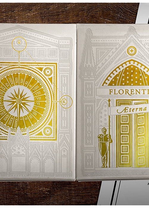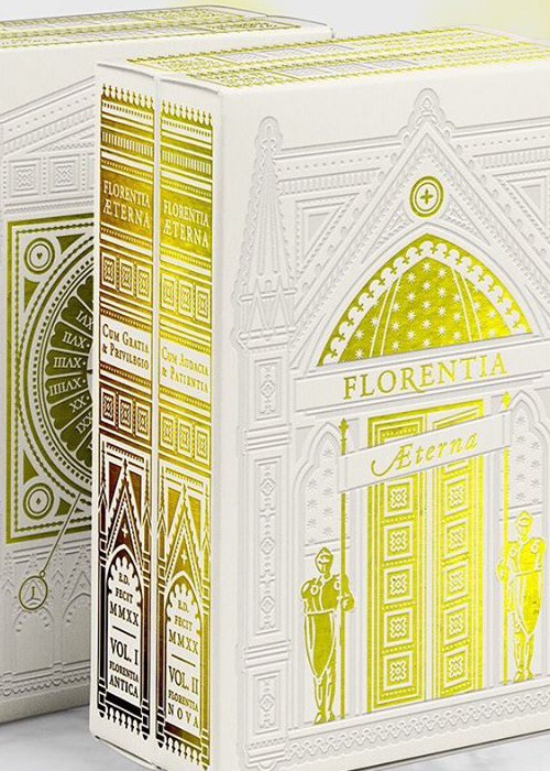 Florentia Aeterna holds both Florentia Antica and Florentia Nova cards together in a limited, hand-numbered edition. Printed on cotton paper with gold foil and hot impression. The limited-edition tuck box.