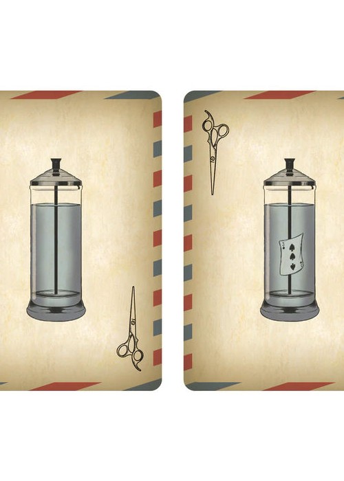I went to my barber to get a haircut some time ago. During this session, he asked me about the card collecting addiction I have. I explained to him that I’m a magician, which lead to collecting playing cards. He also asked about my I’mPossible Bottles. As I sat there getting my hair cut, I rummaged through my brain on which deck I could bottle for him to display on his station.