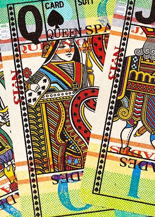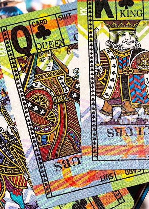 Inside, the cards take this deck to the next level of vintage nostalgia, with heavy amounts of texture, a wide range of vibrant and visually interesting patterns, and bold design elements. The court cards feature mirrored, full-body characters – a first for designer, Jackson Robinson.