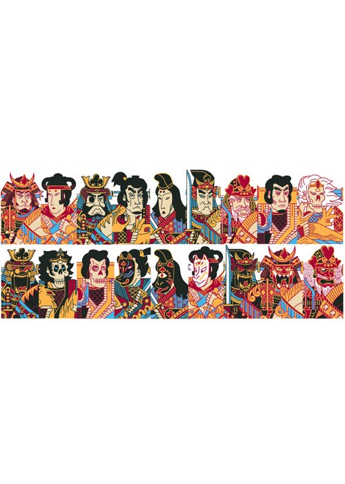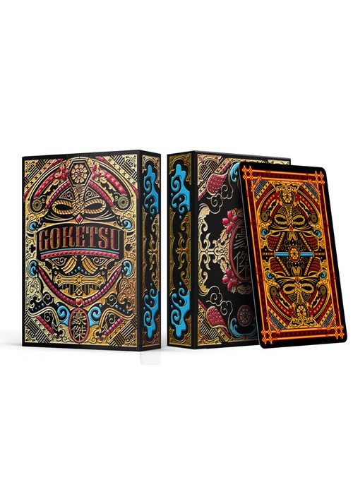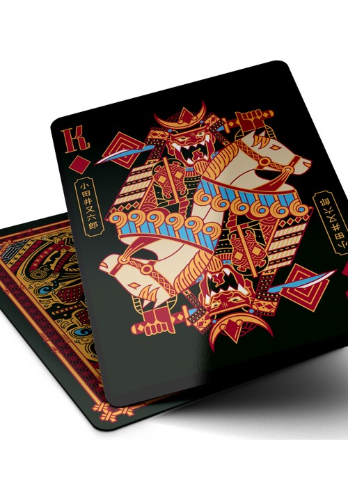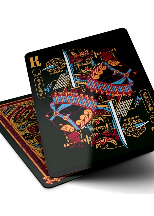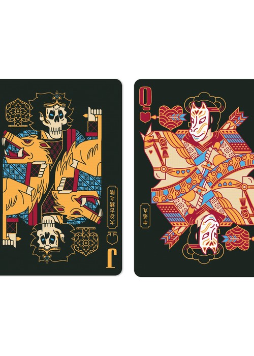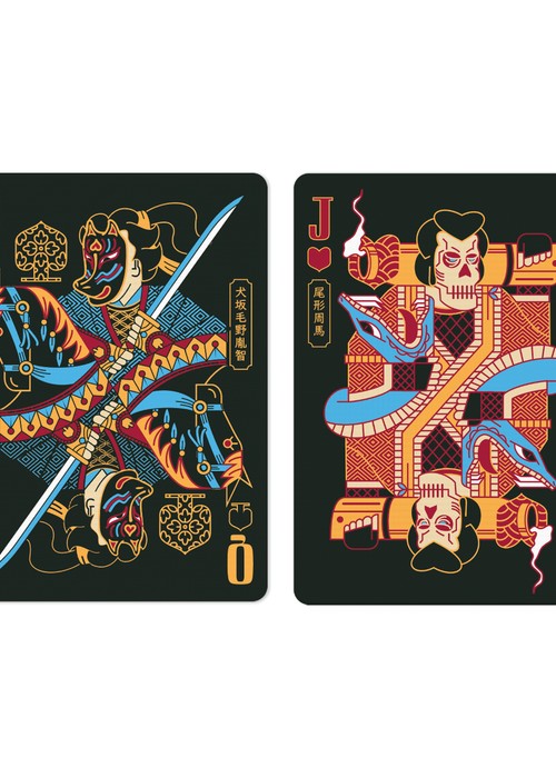 Musha & Goketsu revolves around the intricate and colourful visual elements of Musha-e, traditional Japanese woodblock printing featuring portrayals of warrior figures, and the equally colourful characters of Suikoden, a tale of a band of Robin Hood-esque hero bandits. – Craft Edition Tuck cases made of premium quality paper stock by GMUND from Germany. Manufactured and letterpressed in Hong kong. Produced by Card Experiment (@cardexperiment). Full Deck Scan: https://cardscans.piwigo.com/index?/category/302-goketsu_craft