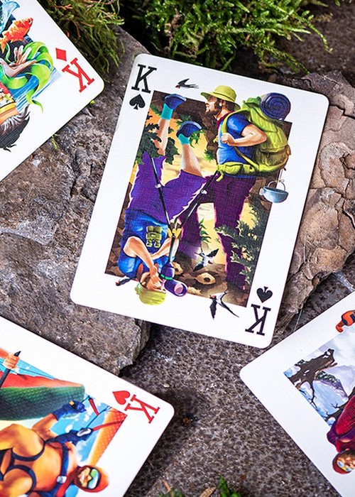 UNIQUE HAND-DRAWN ILLUSTRATIONS BRING THE ENERGY OF ADVENTURE TO EVERY GAME. With 12 reversible Court card illustrations, 4 Aces and 2 Jokers; the Great Outdoors deck detailed 30 different outdoor activities. From snow, to water, land, air and everything in between, there is something for everyone in this deck! It’s also a perfect gift for anyone who loves to get out and about!