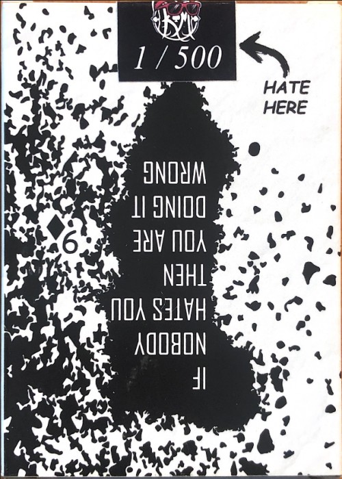 Kickstarter deck: https://www.kickstarter.com/projects/hatersplayingcards/haters-playing-cards-0