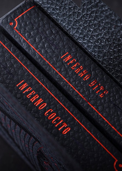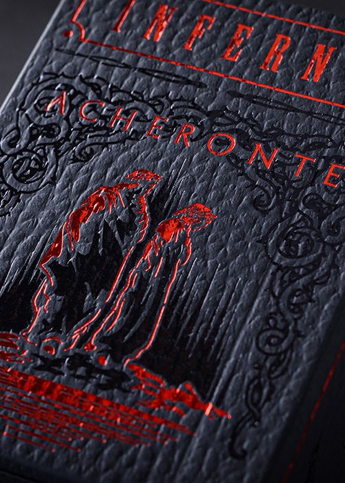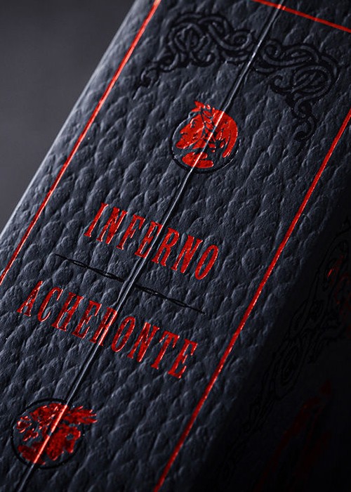 The new edition of the original Acheronte double-box tuck case. Includes the cards from Inferno Dite and Inferno Cocito in the most luxurious double-deck tuck case you can think of: printed in Italy by Archivio Tipografico on leather-like paper and adorned with red and black foil.