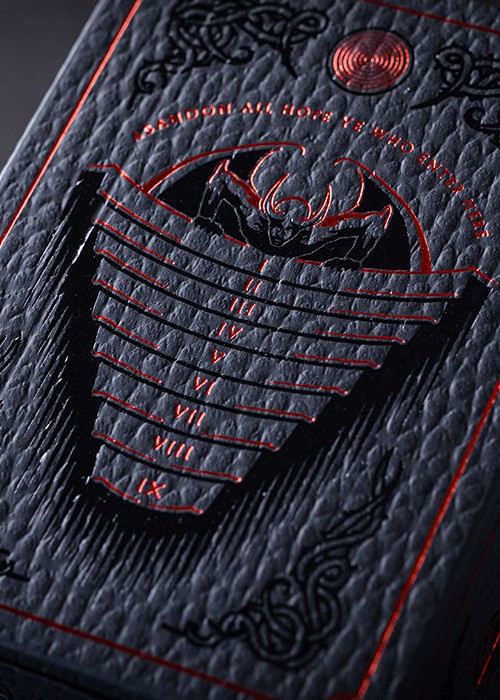 The court cards and the aces represent characters that Dante and Virgilio (the Jokers in Inferno – Dite), his guide, meet during the journey, until they find Lucifer (the Joker in Inferno – Cocito). The red cards show sinner who are damned for passion-related sins, while the black cards portray sinners who used their intelligence to betray and deceive (Dante places the latter much deeper in hell).