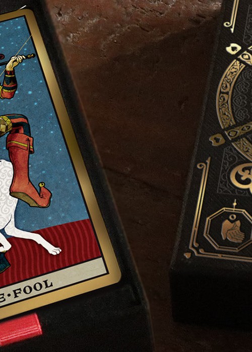 These historical tarot decks use the Latin suits of swords, batons (or wands), cups, and coins (or pentacles), but the original House of the Rising Spade was a deck that used the French suits of spades, clubs, hearts, and diamonds. For the Keymaster, I merged the two suits, using the French suits as a base and putting the Latin suits from the Marseilles tarot on top as golden sigils. In this unique feature, the sigils seal the correspondences with a magical bond.