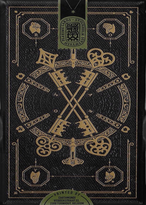 This is the main gate of the House of the Rising Spade, meet the Keymaster standing in front of it. Who shall pass? Complete deck of 78 tarot size cards with gold foil application on both sides: 22 Major Arcana with new design and classic iconography + 56 minor arcana. The number cards feature an innovative merging system, where the 2 suits (Latin and French) are together on the same card: Cups, Coins, Swords, and Wands, are depicted as a golden sigil on their correspondent Hearts, Diamonds, Spades, and Clubs. You can use this deck both for divination with french suits, or regular tarot readings with Latin suits. Only 550 made in total, this is an item that will not be produced again. The cards feature high-quality gilded edges, handmade in France. This variant features a unique lid sculpted in 3D, casted in resin and handpainted by expert hands in Italy. The cards are presented in a tray with crushed velvet and red ribbon for easy lift.