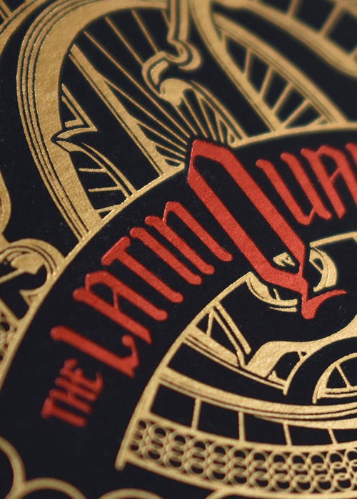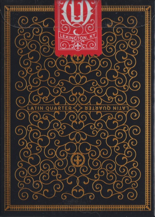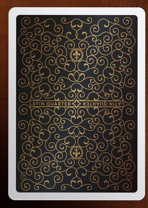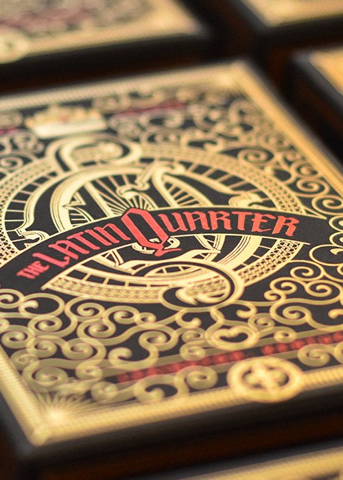 The Latin Quarter moniker harkens back to Paris in the Middle Ages. The Latin Quarter was the area around the great University of Paris where all the scholars and great thinkers of the time resided and Latin was the commonly spoken tongue in the area. Our design pays homage to that history. The typeface used for the Latin Quarter logo is a blackletter font based on the dense calligraphic scripts that monks in the Latin Quarter would have used to write manuscripts. The Fleur De Lis is the historic symbol of the French monarchy and it makes appearances throughout the deck.