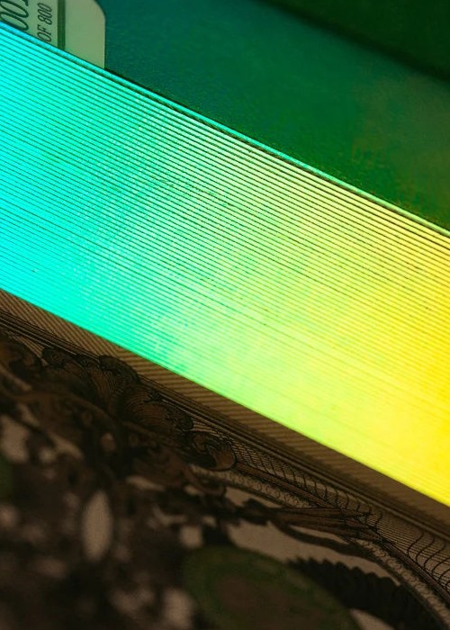 Now wrapped in color-shifting holographic foil, this radiant deck of currency-inspired playing cards comes housed in a custom-designed hardcover, curved-spine book box featuring holographic page edges and underlays as well as an exclusive matte silver, numbered, and signed seal representing the limited 800 deck print run with Expert Playing Card Co.