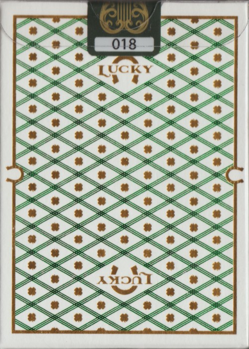 Fully Custom St. Patrick’s Day themed court feature along with a beautiful custom AOS and Identical Jokers. Clover pips are used in place of Clubs, as well as unique metallic gold and metallic green suits rather than traditional black and red.