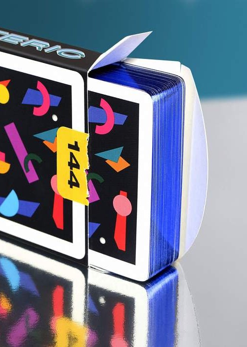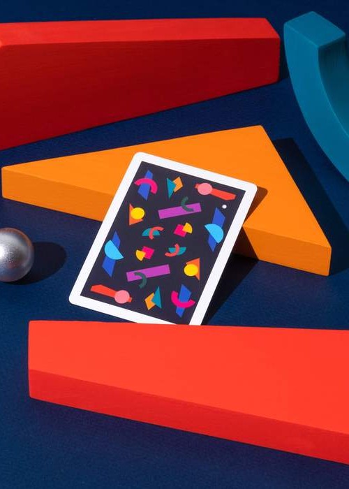 The deck itself features a range of geometric shapes throughout the deck with a fun and unique colour palette. Make the deck come to life by riffling through the cards to see the silver ball move and dodge the obstacles!