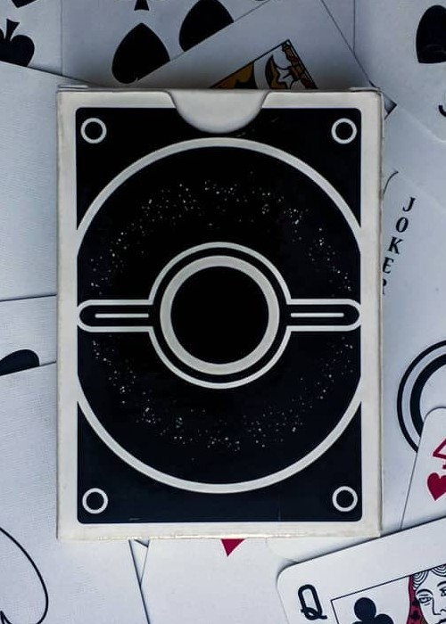 The face designs are mostly traditional, with slight color modifications to better match the deck’s theme. There are 2 identical, fully custom Jokers that reflect the back design and create a sense of continuity and fluidity within the deck. The deck comes with 2 gaff cards that magicians can take advantage of and use to spice up their performance, including a black face card and a double backer! Printed by USPCC, the cards are of an exceptional quality and are durable.