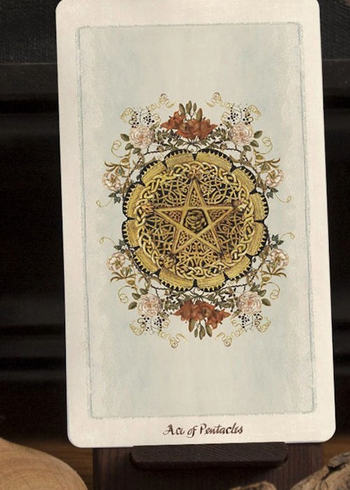 All imagery in this 84 card deck is hand-painted using traditional oils by Linnea Gits, and all copy is hand-lettered by Peter Dunham. The deck’s inspiration is nature’s visual beauty, early Celtic mysticism, and Renaissance paintings’ luminous beauty.