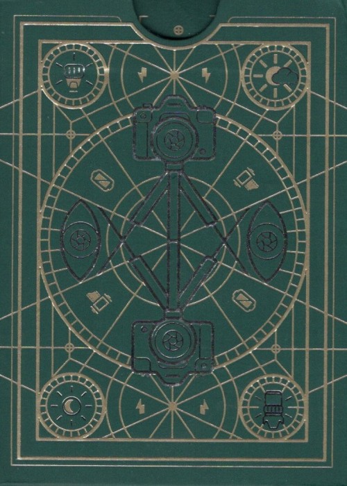 The Photography Deck Green Edition. LIMITED EDITION Deck with two Kickstarter Exclusive Jokers. This green color variant and artwork is ONLY available on Kickstarter. Only one production run of this color variant will ever be produced. Each of the suits contains one of the four different categories of information: Spades – Camera Basics Hearts – Composition Clubs – Technical Diamonds – Shooting Styles