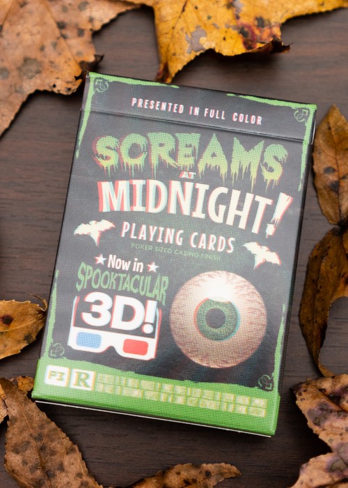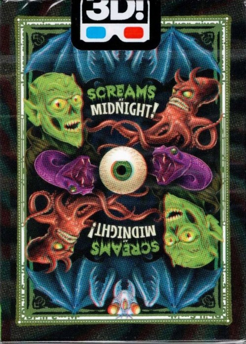 Halloween fright nights are back! Screams at Midnight playing cards celebrate the creepy, fun monster movies of the past. Devilishly delightful creatures adorn the back design. Just like many of your favorite horror flicks, these cards use 3D technology to make the monsters jump right out at you when you wear the included glasses!