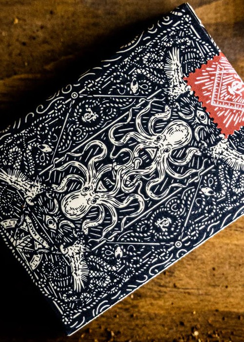Seafarers took 6 months to design and was illustrated completely by hand, featuring a back design writhing with symbolism, an iconic ace of spades, as well a set of original court cards that tell an enchanting tale.
