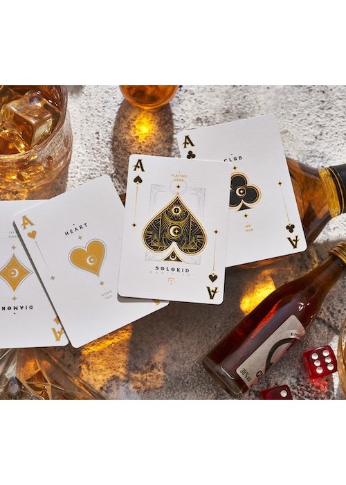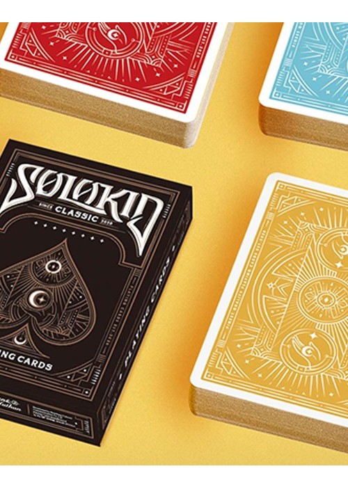 China exclusive. Solokid simply repackaged the Luxury Gold Regular cards with a Black tuck. Exactly as beautiful as the subtle Gold Foil and 3D Embossing on the Black Special Collector’s Brick Box. SoloKid playing cards is an adorable deck that integrates the classic style of traditional playing cards, the gorgeous crafts brought by modern advanced technology, and the retro colour like pictorial in the 50s and 60s. SoloKid has three stunning colours that can be chosen by players with different preferences: Ruby, Cyan, and Luxury Gold. Every editions of Solokid is worthy of you to make space from your card collection and enjoy it!