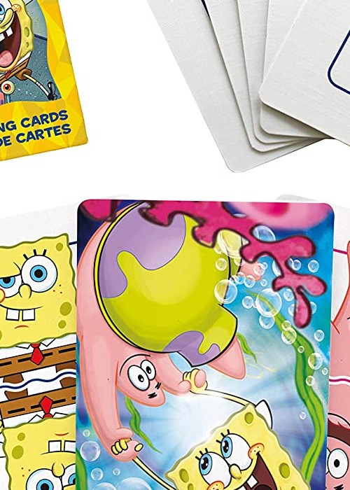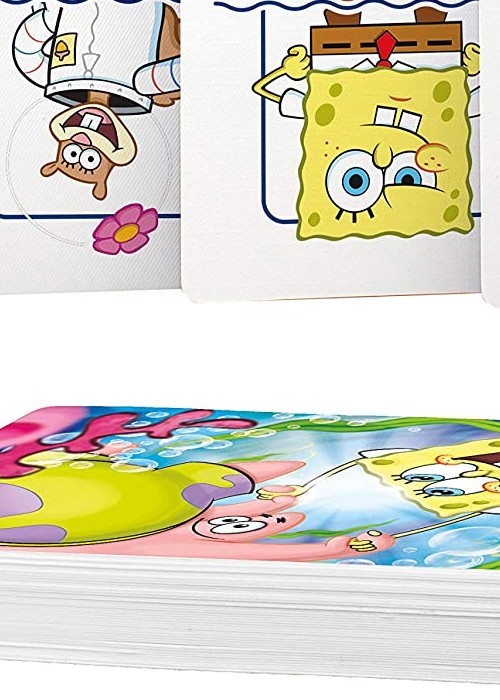 All your favorite characters from the SpongeBob SquarePants show are in this seaworthy deck of officially licensed playing cards. 100% officially licensed merchandise. Deck contains multiple exclusive images. Cards measure 2. 5 x 3. 5 and have a linen type finish. Great item for fun and players alike. Poker size cards.