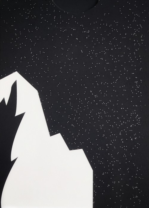 The tuck and card backs feature a jet black night sky, with a contrasting stark white mountain…representing the challenges that lie ahead of us before greatness. The stars speckle slightly in the background as you stare into the its immenseness.