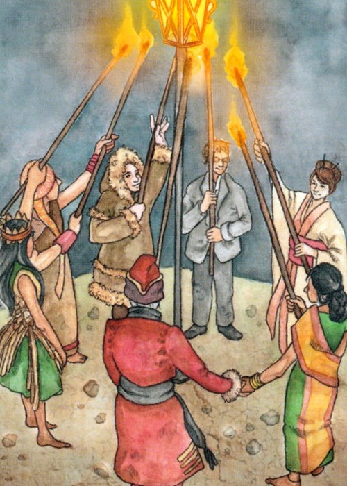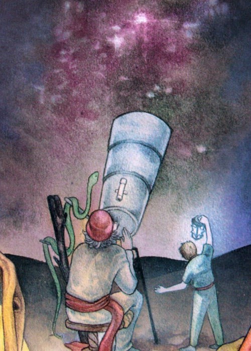 Scans of each card can be seen at http://www.marytcusack.com/maryc/decks/html/Tarot/Prince.html Based on the beloved novel by Antoine de Saint-Exupéry, Tarot of the Little Prince is filled with whimsical art that’s as powerful as it is tender. The evocative illustrations loosely follow the Rider-Waite-Smith symbols and structure, so the deck can be used as part of a regular reading practice, especially by those who wish to look at the questions and issues of life with a sense of nostalgia for a more innocent time. Tarot of the Little Prince speaks to the imagination in addition to connecting to the spirit and the soul.