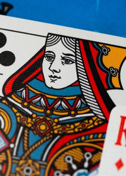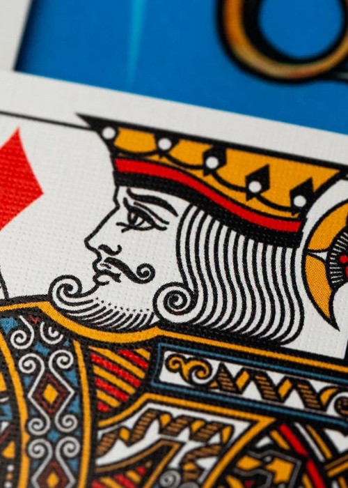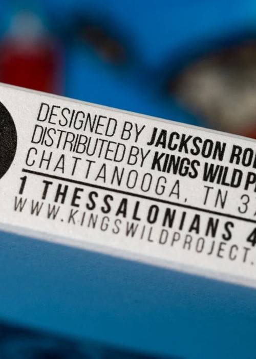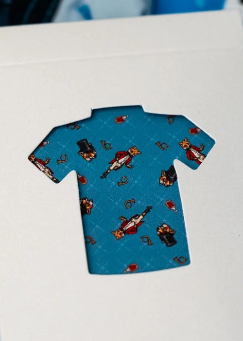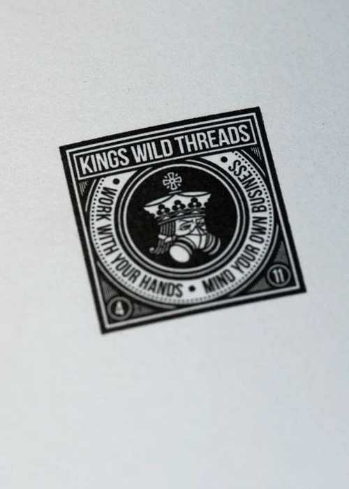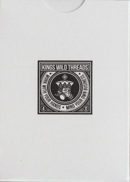 The Kings Wild Threads Deck No. 3 is the third deck in a line of custom playing cards made to pair with the Kings Wild Threads Shirt line. These limited print decks feature a matching Tally Ho Fox Joker pattern on the back design which can be viewed through the custom shirt shaped die cut hole on the tuck case. Designer Jackson Robinson used his own standard court and pip designs on this simple yet unique deck of playing cards.