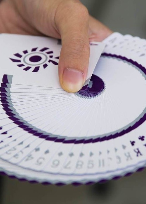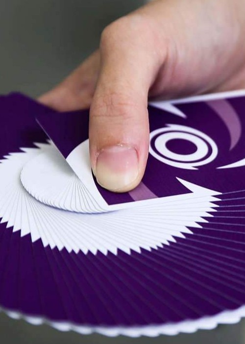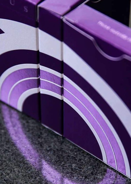 Ventus Playing Cards in a beautiful Mauve colour-way. The deck is printed in Taiwan on the new softer and thinner Luxury stock. It also has the latest finish from the Taiwan factory — this helps the deck fan more evenly for a longer span of time. Limited edition to the initial release of 444 decks.