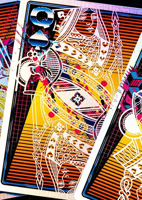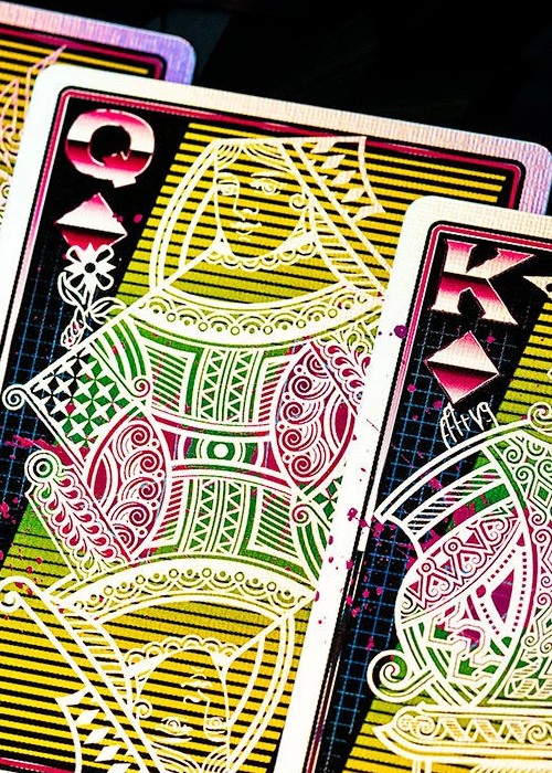 VHS 1982 is a light-hearted deck that is inspired by the bold designs of the early 80s. The Kings Wild standard court cards get a totally rad upgrade with face-melting holographic foiling on both the front and the back of these retro playing cards.