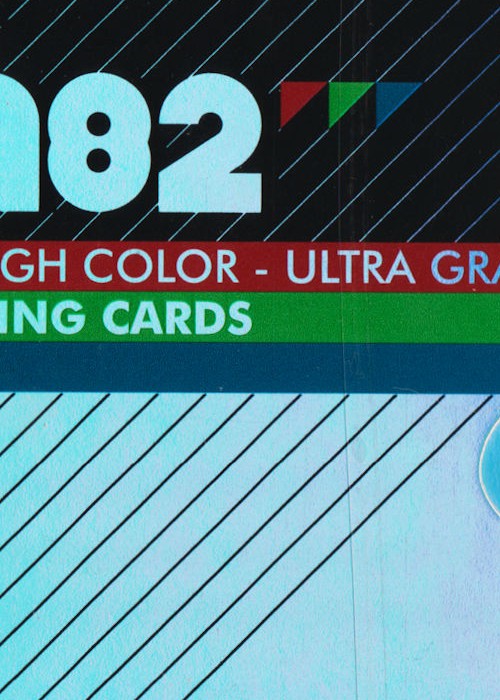 The NEW HOLOGRAPHIC Standard Edition VHS 1982 playing cards are back and looking more like the dazzling 80’s than ever before! The foiled out cards are now encased in an equally flashy holographic foiled tuck case!