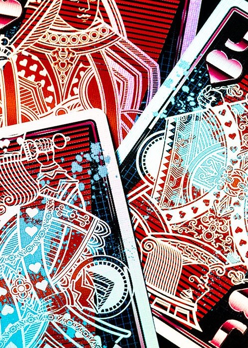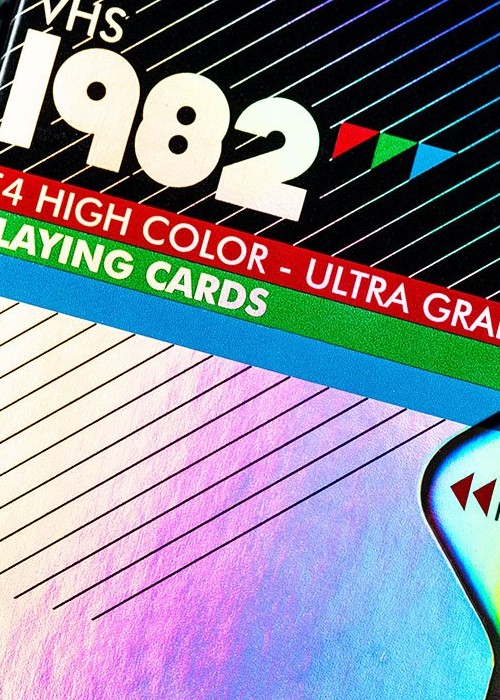 VHS 1982 is a light-hearted deck that is inspired by the bold designs of the early 80s. The Kings Wild standard court cards get a totally rad upgrade with face-melting holographic foiling on both the front and the back of the cards.