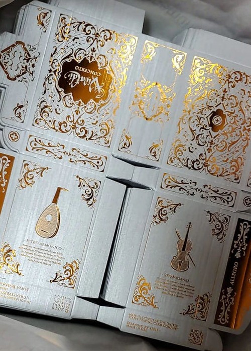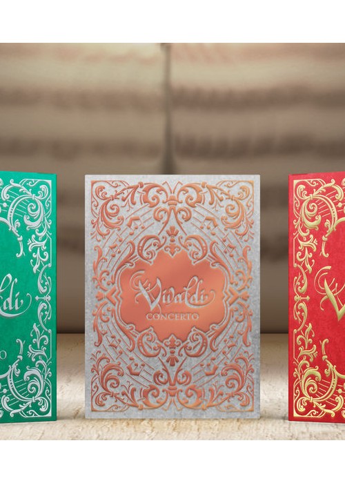 The Vivaldi ensemble is composed of two main decks: Vivaldi Allegro and Vivaldi Largo. Vivaldi Concerto is a special, limited and numbered book-like edition holding the playing cards of both variations. Stretch goals will add a series of goodies that will be revealed later in the campaign. Stay tuned!