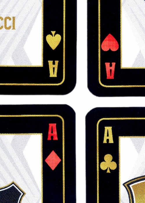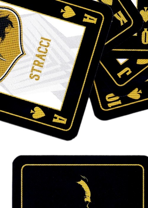 Waddingtons of London, a historic brand now owned by Winning Moves, produced this licensed deck in 2020. With 54 unique images, the history of the Italian clans is traced in several years. This is a bridge sized deck with a one-way back which is very dark in color, with the logo of the movie.