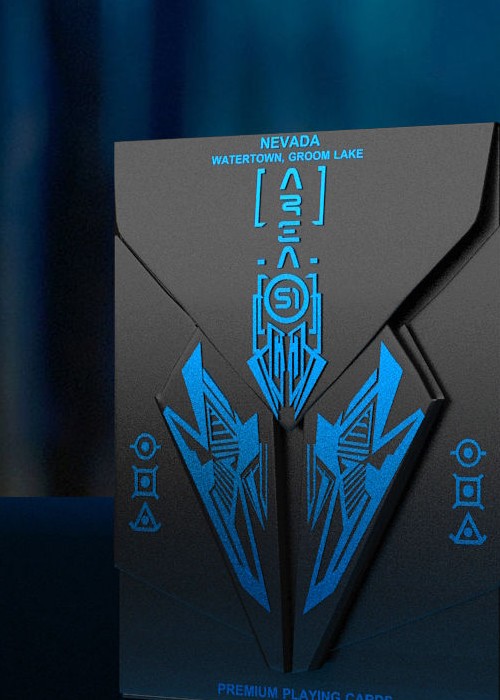 A51 Playing Cards Design is inspired by this conspiracy theory. A51 Deck has two Editions: Human and Alien. Both are printed with Blue / Red Foil with embossed Box. The Back Design is made in shape of an abstract platform, which are hidden from human eyes, while some mysterious proccesses are running.