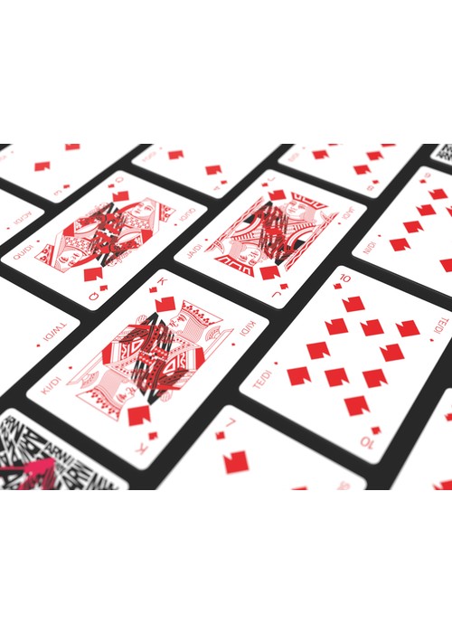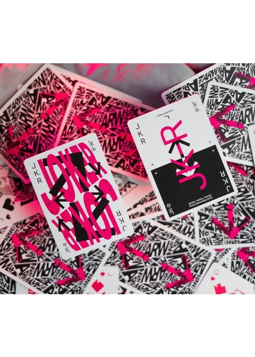 2nd deck in ARW series Printed by USPCC, one-time print run, 2500 decks 2-way back, fully custom deck and printed tuck including neon ink. 56 cards, crushed premium bee stock, traditionally cut with air cushion finish 2x joker, 1x double backer & 1x ad card included https://www.kickstarter.com/projects/lukewadey/arw-playing-cards-v2