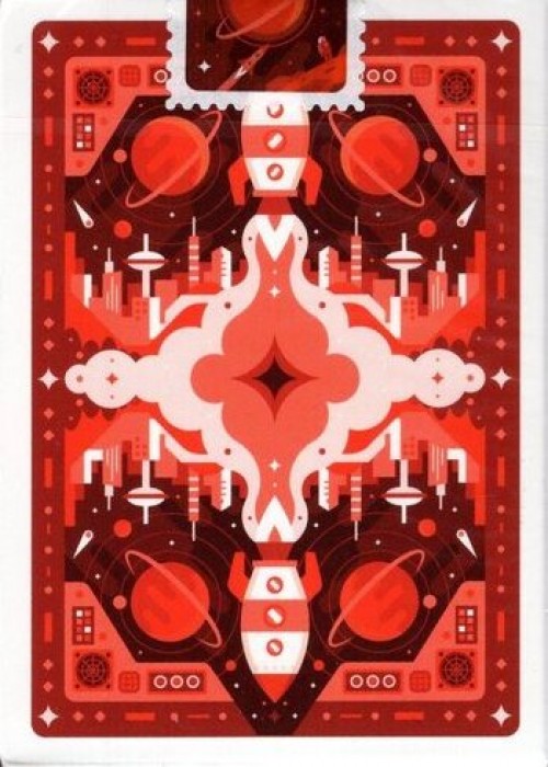 Buckle up for a blast from the past with Bicycle Retro Rocket Playing Cards! These cards celebrate a time when space travel was the stuff of dreams – zipping off to worlds unknown to create vast floating cities in the skies. Designed by Douglas Fuchs, the Retro Rockets are covered in fully custom artwork. The backs have rockets blasting off from a Martian metropolis, and rockets are featured on the Jokers as well. The court cards are all astronauts, while the number cards feature custom suit pips. Printed on Penguin’s signature elite thin-crushed stock with an air-cushion magic finish, these traditionally-cut cards are a dream to handle whether you’re playing on Earth or in outer space! The Retro Rockets are printed by the United States Playing Card Company. The cards are printed using vegetable-based inks and starch-based laminates on FSC-certified paper sourced from sustainable forests. This means the cards not only shuffle, fan, and spread perfectly for all of your favorite games & tricks, they’re made with the planet in mind!