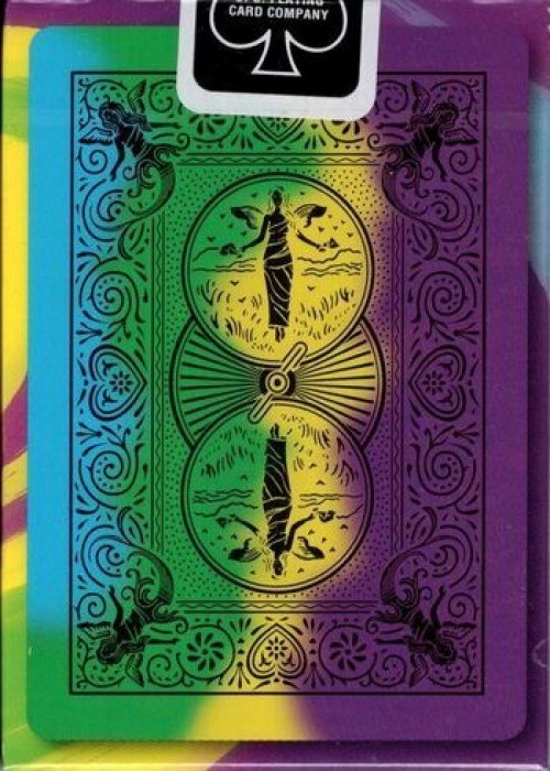 You are buying a new sealed rare deck of cards. These are the 4th edition in the TIE DYE collection. Cards Feature a Tie Dye Designed Back that can be used in any standard 52 card game and even includes 2 Gaff cards to do a magic card trick called Million Dollar Monte. The jokers are a Love & a Peace colored button pin. There is also a a peace sign on each of the pips of every card, the court cards clothing show they have interesting style, and look real close at the suicide King of Hearts which normally has him holding a knife thru his head, but this deck has something different instead of the knife.