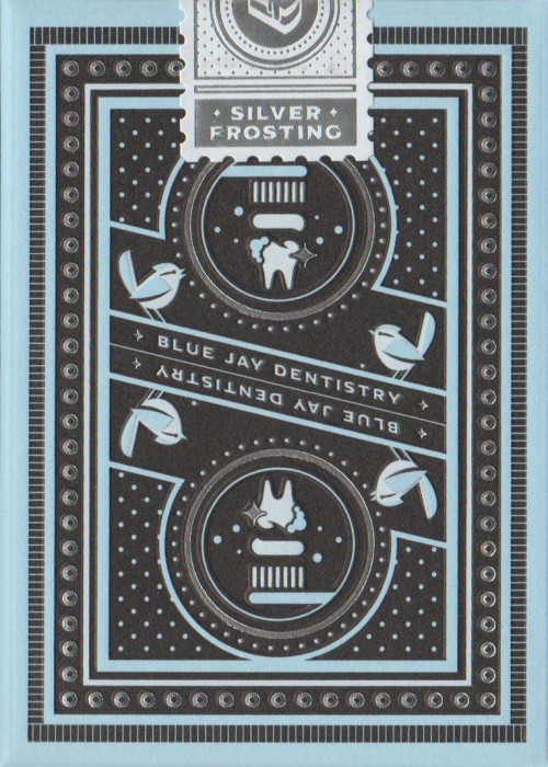 One of four decks in the Blue Jay Dentistry kickstarter Project, put out by Meadowlark Playing Cards and designed by the talented Elettra Deganello. It could be purchased individually or as a limited edition set (350 produced) entitled the Sweet Tooth Chronicles. The other decks in the set are Black Liquorice and a gilded version of both decks. Full Deck Scan: https://cardscans.piwigo.com/index?/category/984-blue_jay_sweet_tooth