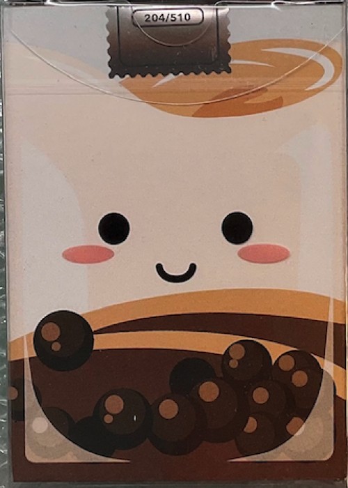 Boba Playing Cards is a deck flowing with the theme of Boba tea, commonly referred to as Bubble tea. This deck family was available as a Kickstarter campaign. The Brown Sugar Gilded edition was a limited edition stretch goal that elevated the original design with a brown / copper gilding around the edges of the deck.