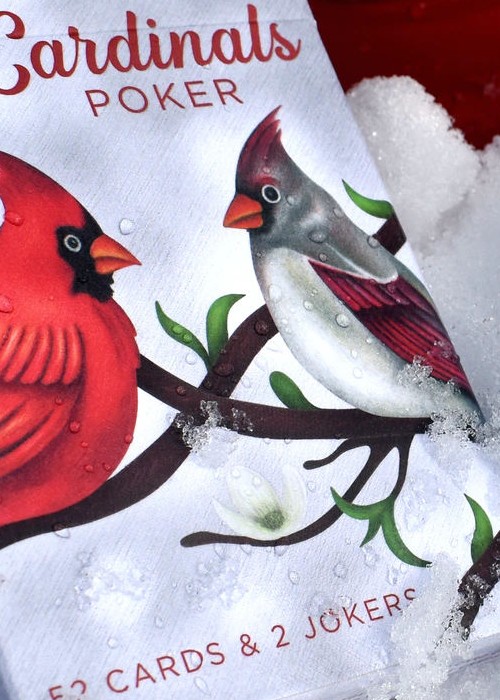 The Cardinals POKER Deck is perfect for any game night! The Tuck Box features a light grey winter-like background and a beautiful composition of the Cardinals pair. The final printing will be 4-Color Process on a premium Matte Stock and a clear UV Spot Ink overlay in strategic areas of the design.