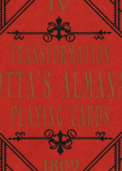 The red Turandot deck is the fourth in a series of six famous transformation playing card decks we plan to release… This fourth Cotta’s almanac playing cards deck was originally published in 1809. There is no known evidence of any deck issued in 1808, and so this red almanac issued in 1809 is considered to be the fourth in a series.