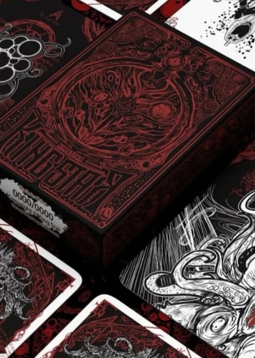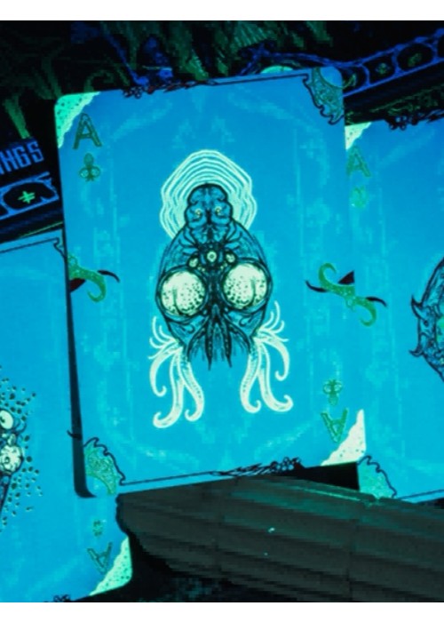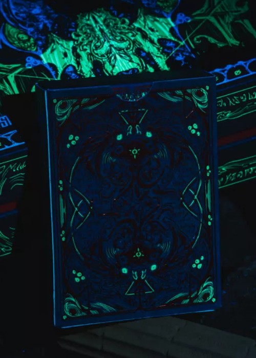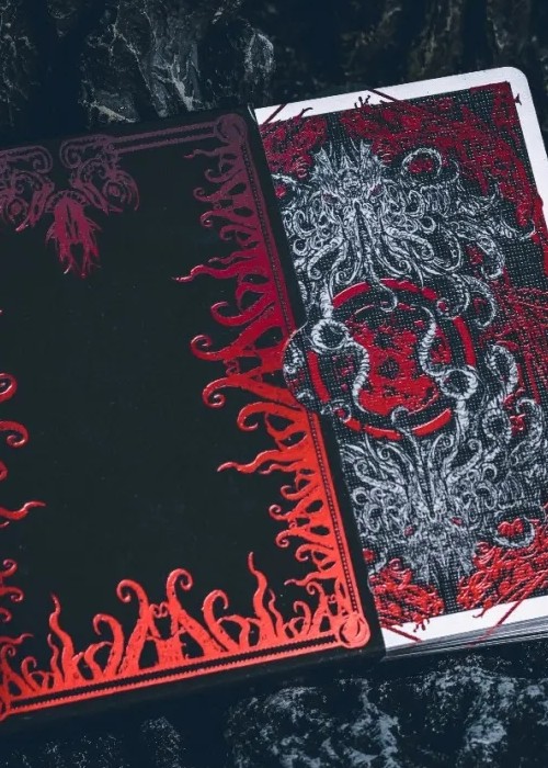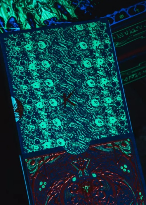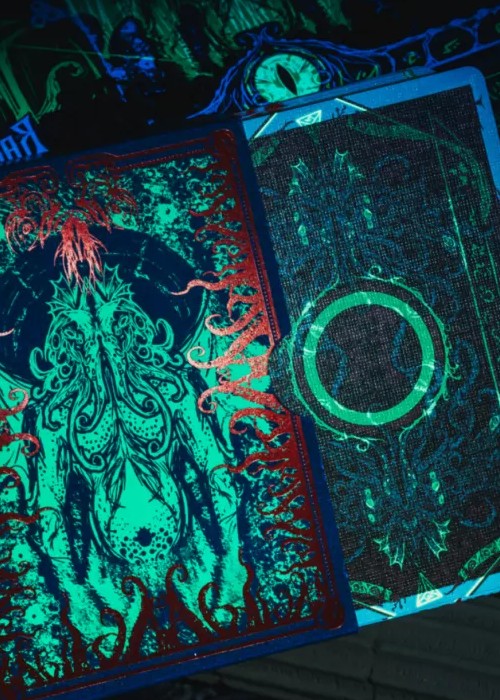 It is foretold that, that which has risen will sink, and that which has sunk will rise. It descended from among the stars to earth, and the stars will eventually return to their rightful place. The abomination is waiting for the dreamscape in the deep abyss. Decay spreads in universe, as it is devoured by the darkness. That moment has arrived. Glimpse of Blood Mirror Hidden deck is only found in the boxset, not sold separately. Printed by KSPCC, using 310G German black core paper, limited edition of 1288. The double-layer tuck box is embossed, and completely covered with gold foil and green invisible ultraviolet ink technology. Dark red bronzing foil is used on the face and back of the cards, and both sides are covered with green invisible ultraviolet ink technology as well.