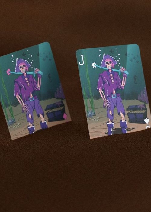 The number cards are now two-way and features different aquatic animals to make the cards easier to play with. The Aces features large central pips. The Jokers: The stars of the deck feature the image responsible for bringing these cards to life! The court cards feature 4 unique and creative King, Queen and Jack designs.