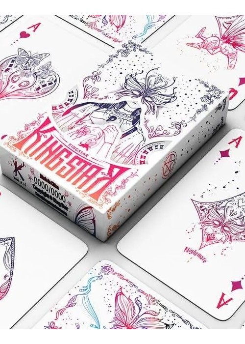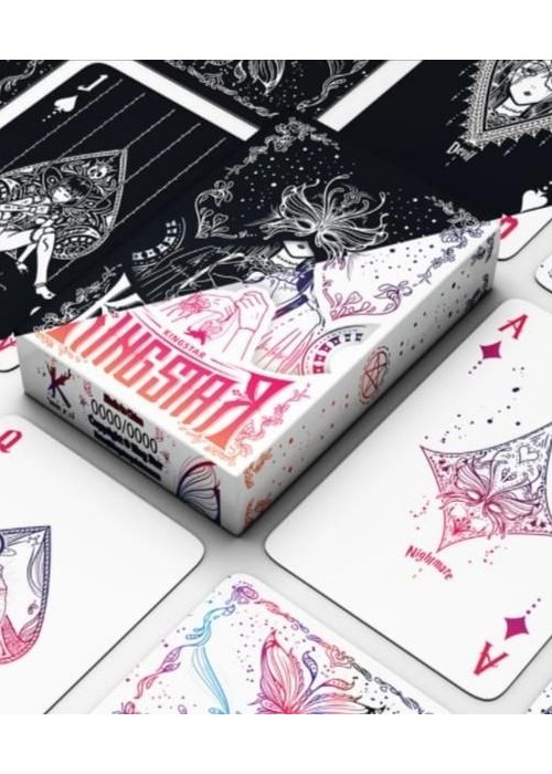 Silence V2 Holographic Regular (White), limited edition of 1588, numbered laser custom seal. Launched as a Crowdfunding project on May 2021. Welcome to the Courtyard of Silence again! You will reunite with these strange dolls such as Scarecrow, Ragdoll Rabbit, Dark Loli, Butterfly, Marionette and so on. [Silence V2] is the sequel to KING STAR’s 2020 work [Silence]. The design is based on the dark Gothic style, with characters that have previously appeared in [Silence] and new characters to create a beautiful dark atmosphere. Card backs are specially designed for cardistry!