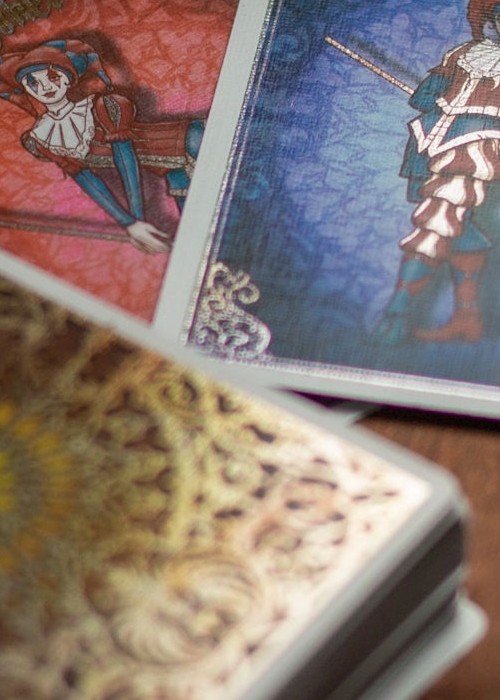 Typically this printing technique is used on trading cards (Pokemon) but never on playing cards due to the research and development involved in ensuring the playing cards handle just as well as a standard deck, with no clumping or chipped edges.