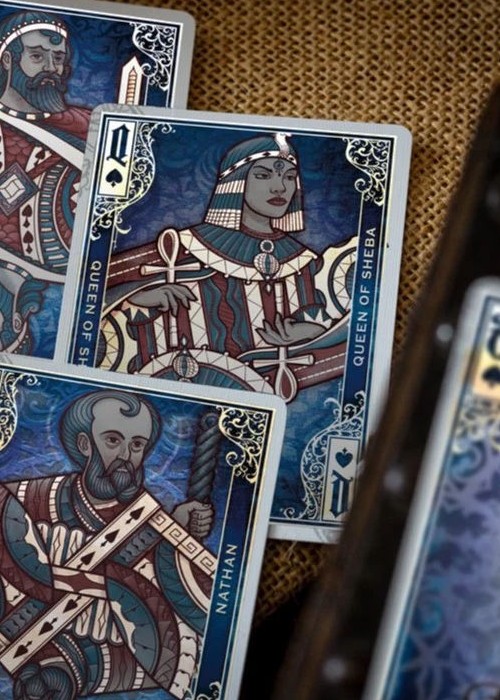 Dominion playing cards uses custom illustrated courts of the most well-known Kings and Queens of fictional and non-fictional empires of all times. It reimagines the courts of a standard deck with illustrations that are gorgeous and colorful, with intricate details. Double-Sided Full-Foil on ultra-thin card stock