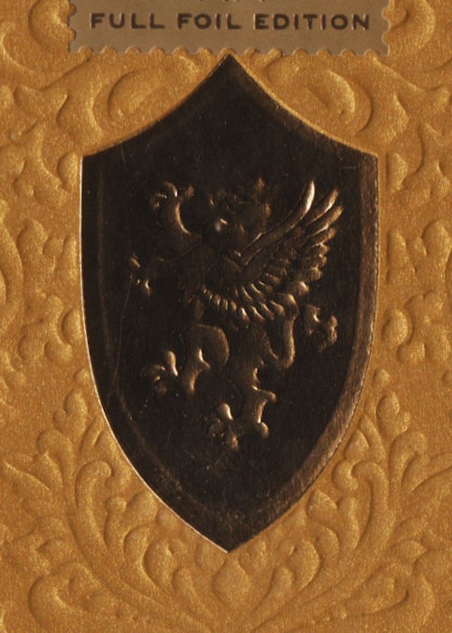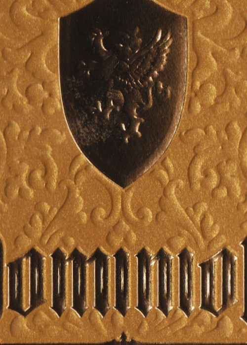 In addition to sculpted embossing, the Dominion tuck boxes feature embossed elements within the hot foil. If you look closely at the griffon artwork in the shield, that is accomplished by pressing an embossing plate through the hot foil and soft touch paper of the tuck box. An advanced packaging technique which is masterfully highlighted by Jody Eklund’s artwork.