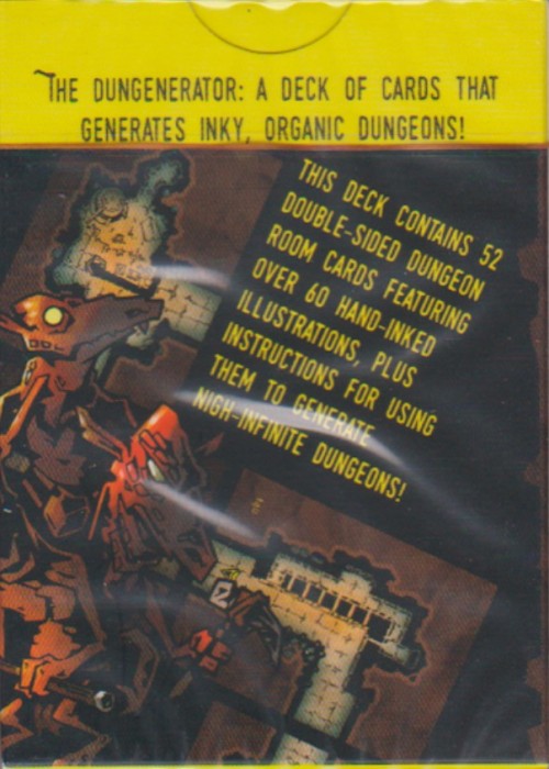 52 double-sided, poker-sized room cards with over 60 pieces of full-color, hand-inked art by me, ROLLINKUNZ! The DUNGENERATOR is useful for tabletop roleplayers that want a fresh dungeon quickly, without having to sketch a layout or rely upon static maps. Each room in the dungeon it generates includes interesting visual prompts, so you can plop your players into a generic dungeon and come out with a unique, satisfying session! It cannot help with the pants.