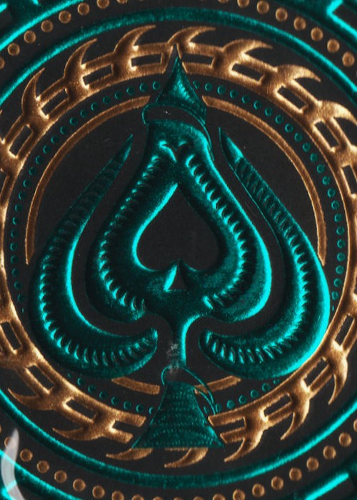 This deck has custom pips, court cards and an amazing twin tip mirror back design allowing for different fans depending on how you fan them.