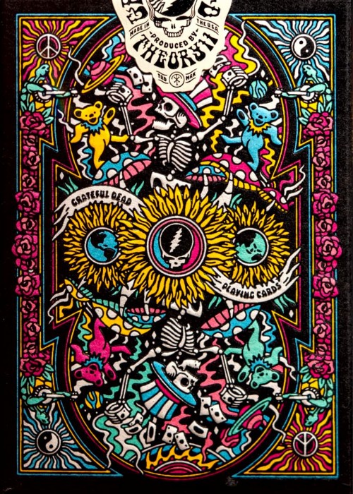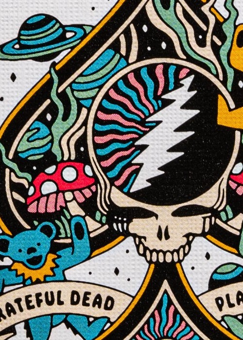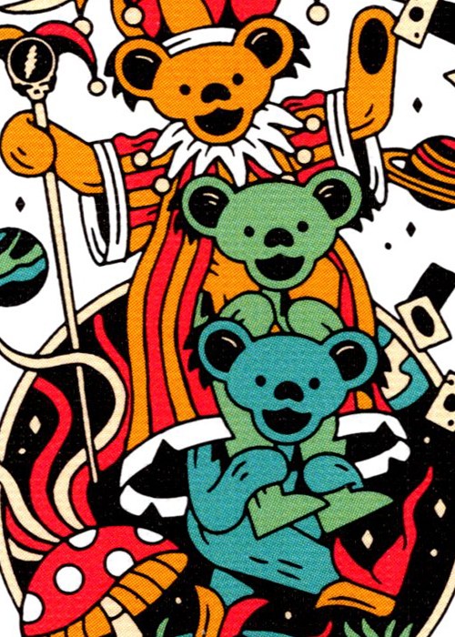 The Back Design AND THE ACES Featuring the unmistakable Steal Your Face logo in the middle, the back design encapsulates iconic imagery that Dead Heads have come to know and love over many decades. The terrapins play their tune, and the dancing bears swing to every note. The aces also feature stunning full-art design, complete with logos and mascots that are cemented in the band’s history.