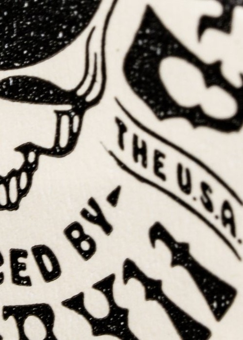 A World of Color THE OUTER PACKAGING The box packaging is printed using antique letterpress machines dating back to the 1960’s – with six layers of vibrant color, embossed for a unique tactile sensation. The front face features the Skull & Roses at center, with custom composition surrounding.