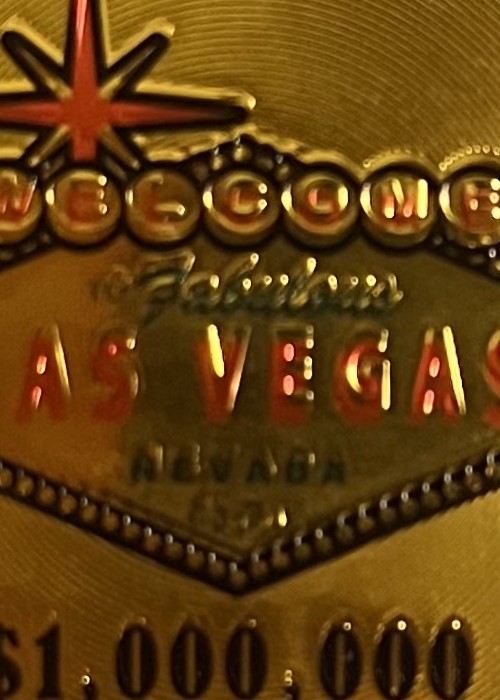 Gold foil cards and tuck from the High Roller floor at the Resort World hotel and casino.