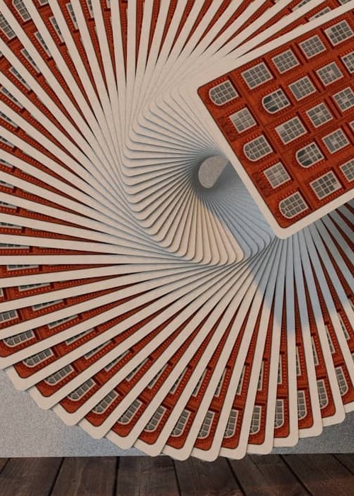 House Playing Cards by Sevcards Printed by the USPCC Thin crushed stock Embossed finish (Linen) Limited to 2500 decks full marking system Traditionally cut Double back gaff Blank face gaff